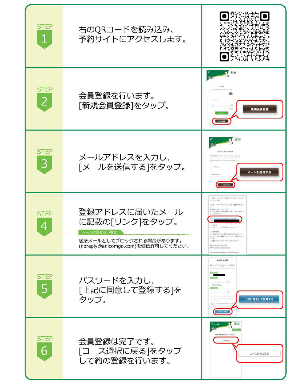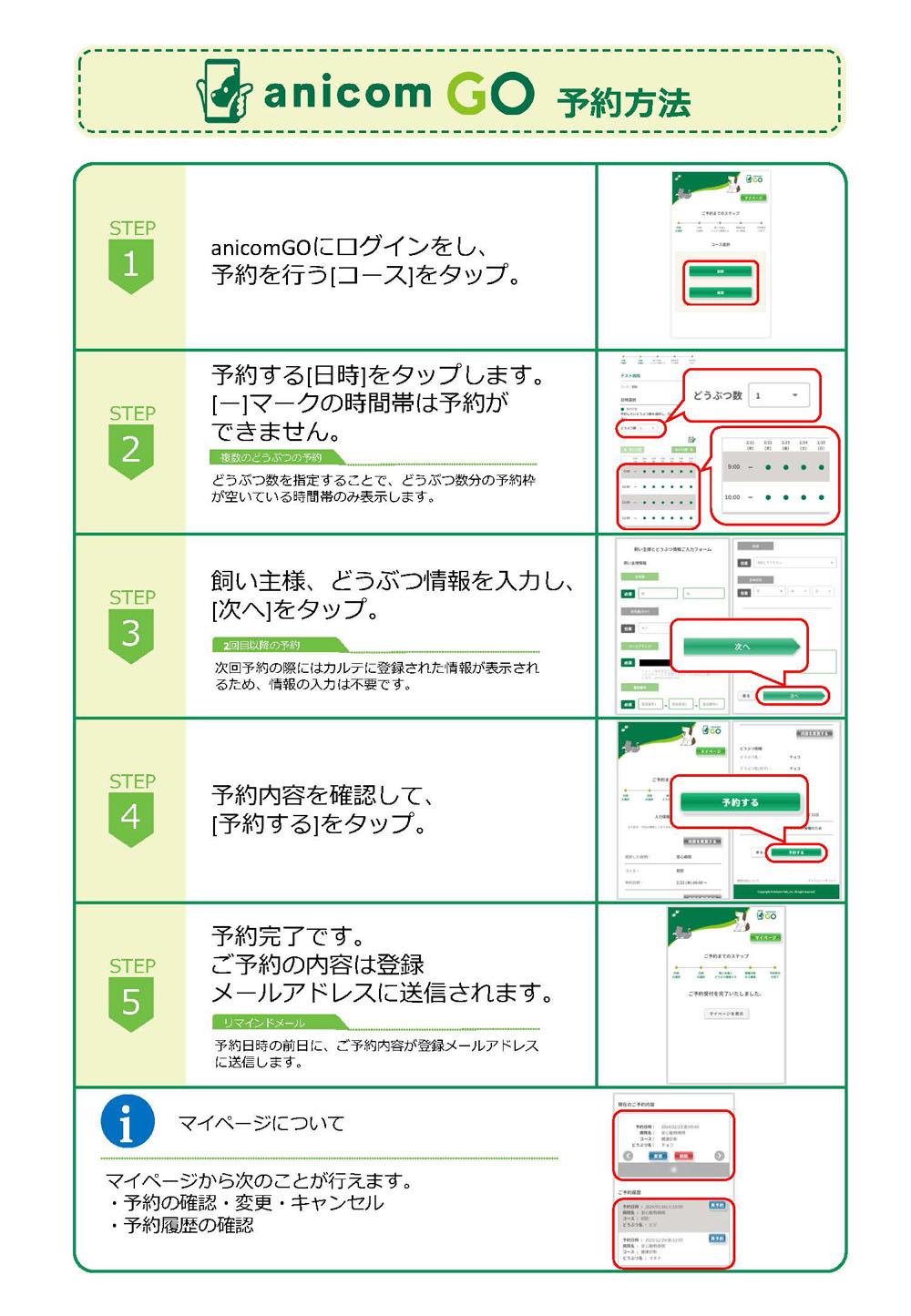 当院では、予約システム「anicom GO」を採用しています。お手数ですが初回は以下の手順で「anicom GO」に会員登録を行ってください